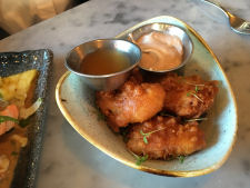 Nikki was pleased with her langoustine starter and I enjoyed the salted cod