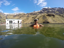 geysers and geysirs, waterfalls with stunning rainbows, swimming pool on the slopes