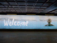 thing that we basically saw when we walked off the plane was a huge sign